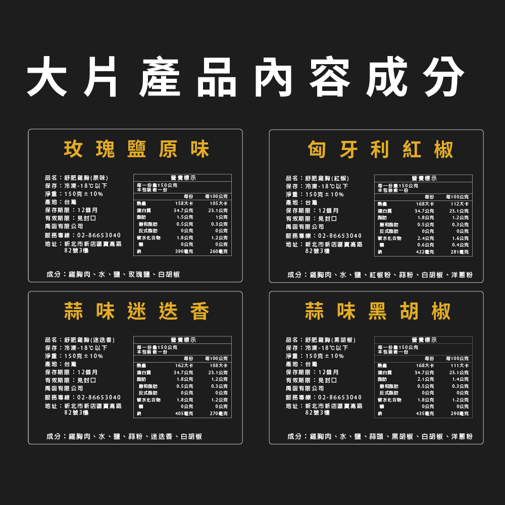 船山舒雞的舒肥雞胸肉採用低溫舒肥方式處理,保留雞胸肉最Q彈多汁的口感,搭配多種不同口味進行真空醃漬,給您每天吃也吃不膩的全新體驗。好吃的同時,船山舒雞的舒肥雞胸肉也在烹調過程中經過恆溫調理殺菌,不添加化學添加物,讓您吃得安心又健康!