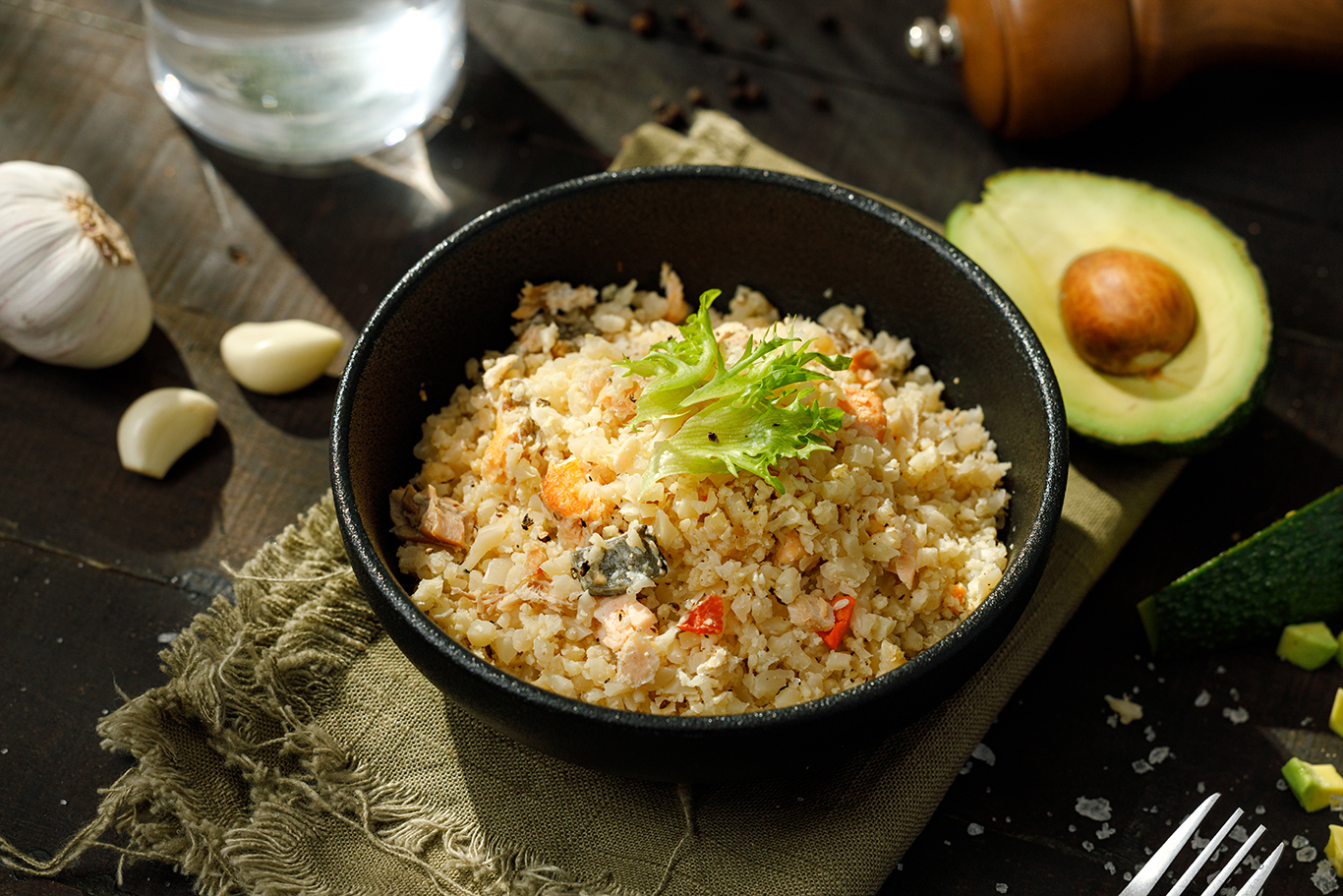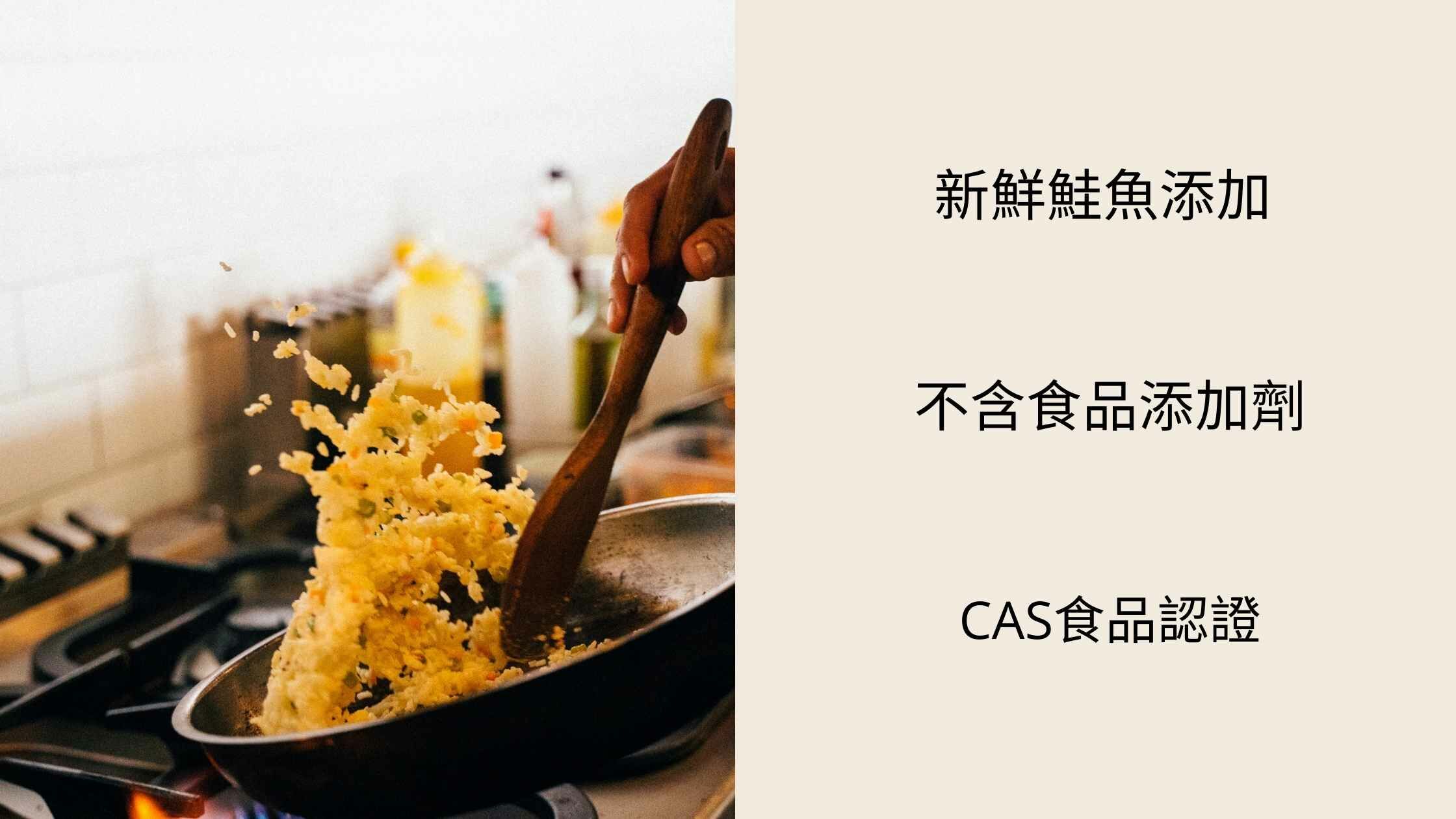 經過精心挑選和預備的鮭魚碎肉、新鮮花椰菜和香氣濃郁的蒜香。無需繁瑣的準備工作,即可在家中獲得經典的鮭魚花椰菜米炒飯。